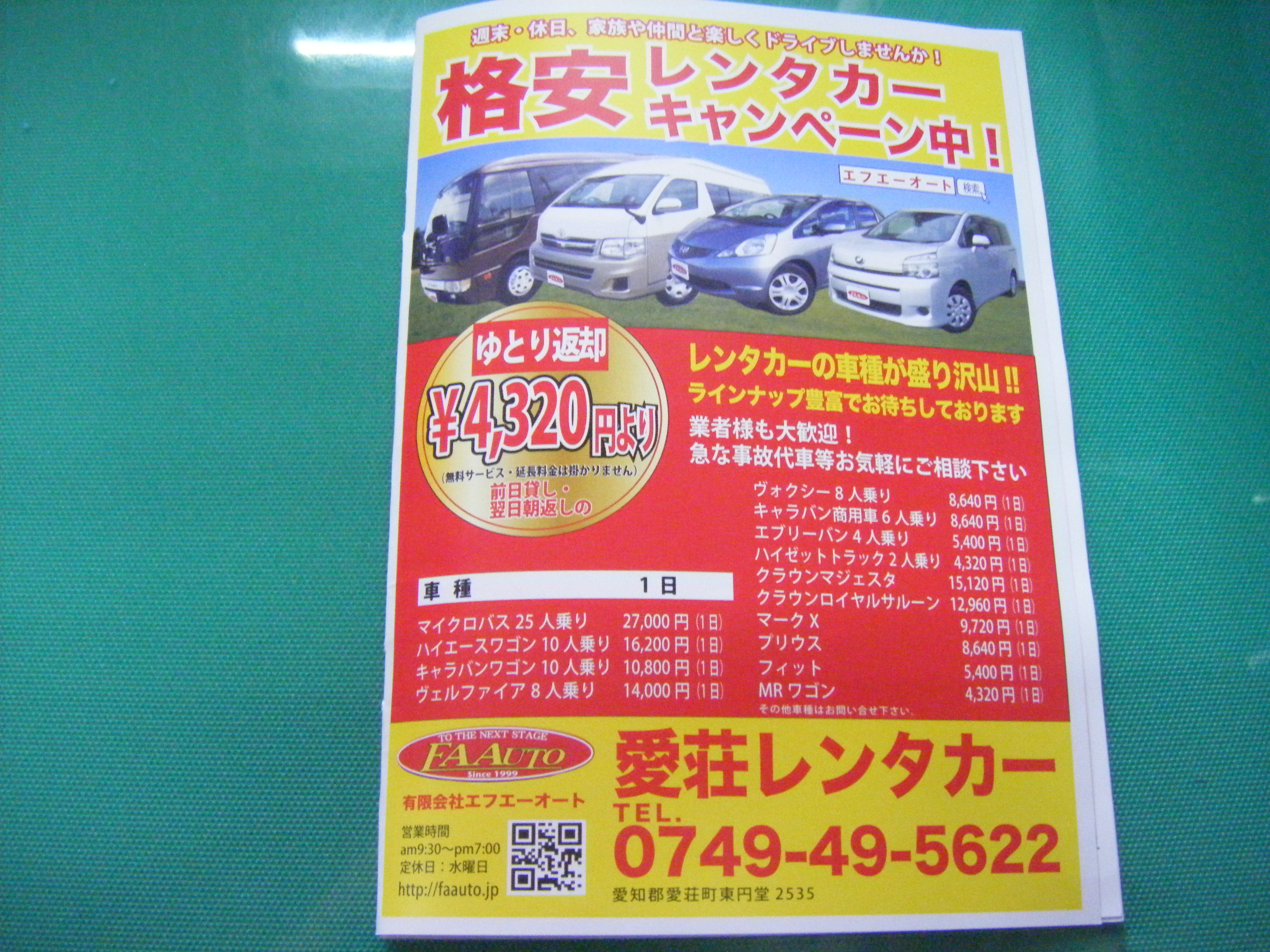 皆さまこんにちは。 更新がだいぶ日があきましたね。 またチョイチョイ更新していきますね。 レンタカーですがすでに8月の予約が入りだしました。 もちろん7月もですが。 今回は皆さま非常に早いご予約をしていただいているなと感じます。 当店はレンタカーの台数も充実させてお客様のご予約をお待ちしております。 是非ご用命は愛荘レンタカーによろしくお願いします。 さて当店は販売もしております。 中古車もです、新車ももちろん取り扱いさせていただいています。 なかなか気になる車がリリースされていますので販売のほうもお気軽にお声おかけください。 今日美味しいお菓子もらいました。 あんまりに美味しかったのでネットで調べて取り寄せようと思ったらなかなかの高級品でした・・ また違う時に買おう〜